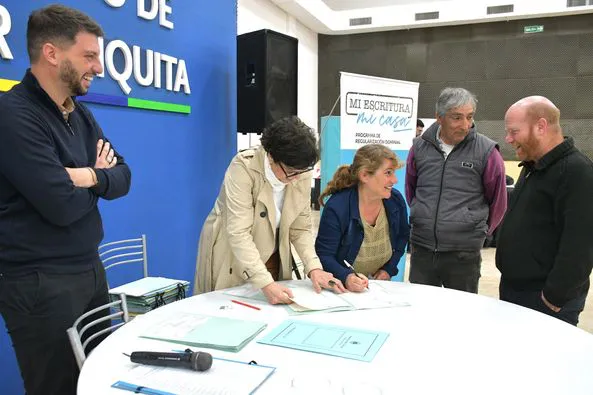 El intendente de Mar Chiquita, Walter Wischnivetzky y el secretario de Gobierno, Facundo Bochicchio, encabezaron una nueva firma de escrituras en Coronel Vidal junto a más de 60 familias. El acto se desarrolló en el marco del programa “Mi escritura, mi casa”, una iniciativa del gobierno de la Provincia de Buenos Aires que permite a los vecinos tener garantizado el título de propiedad de sus viviendas de forma gratuita.