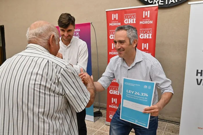 El intendente de Morón, Lucas Ghi, y el ministro de Desarrollo de la Comunidad, Andrés Larroque, entregaron 99 títulos de propiedad a familias de diferentes barrios del distrito, avanzando en la política de regularización dominial impulsada por la Provincia de Buenos Aires.